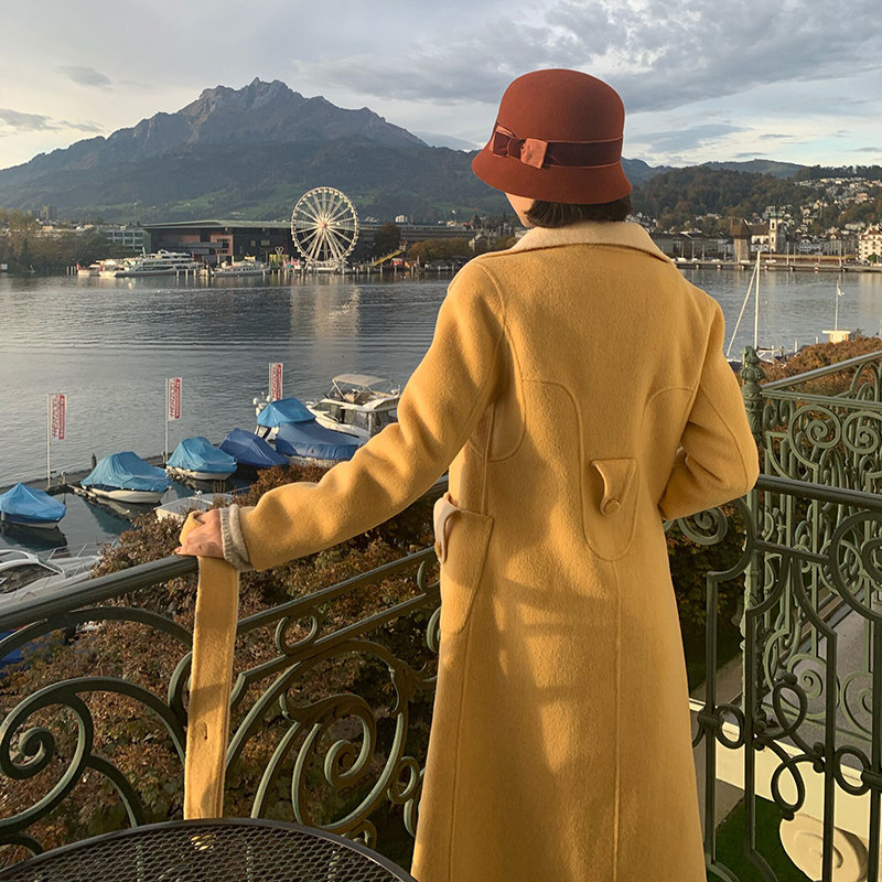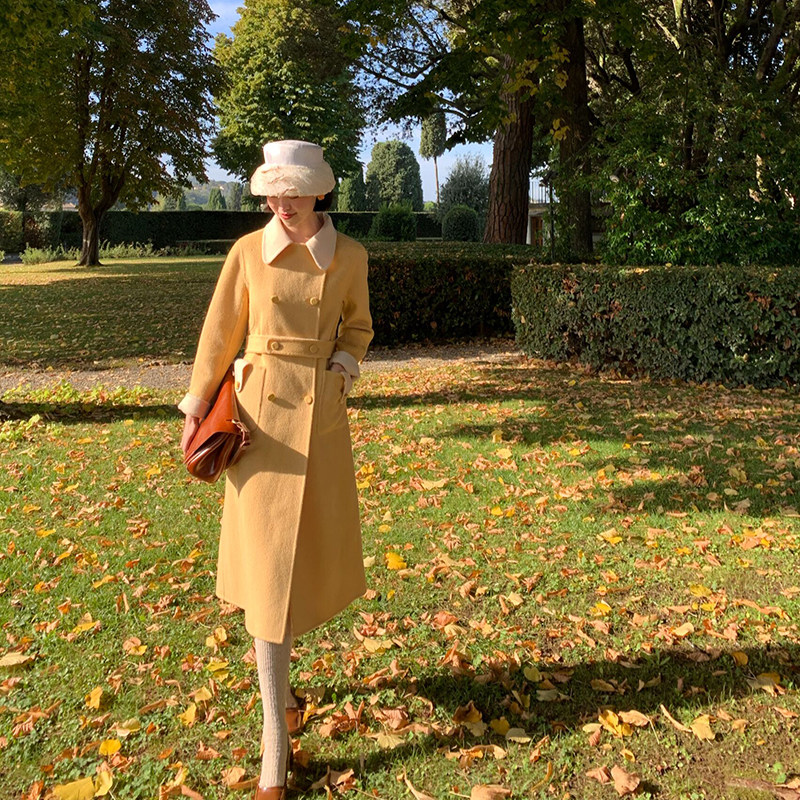 WangHanYan2020 popular medium and long version of 100% Australian wool temperament waist vintage double-sided Ni coat for women
