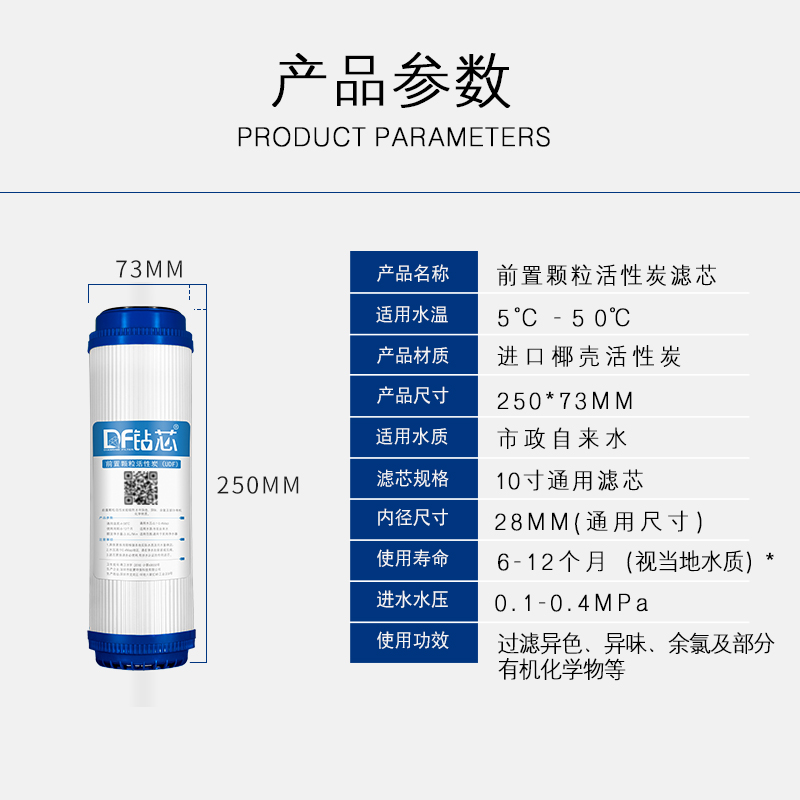 10-inch grain carbon filter water purifier water filtration machine UDF active carbon filter core 20 inch universal accessory water filtration filter core