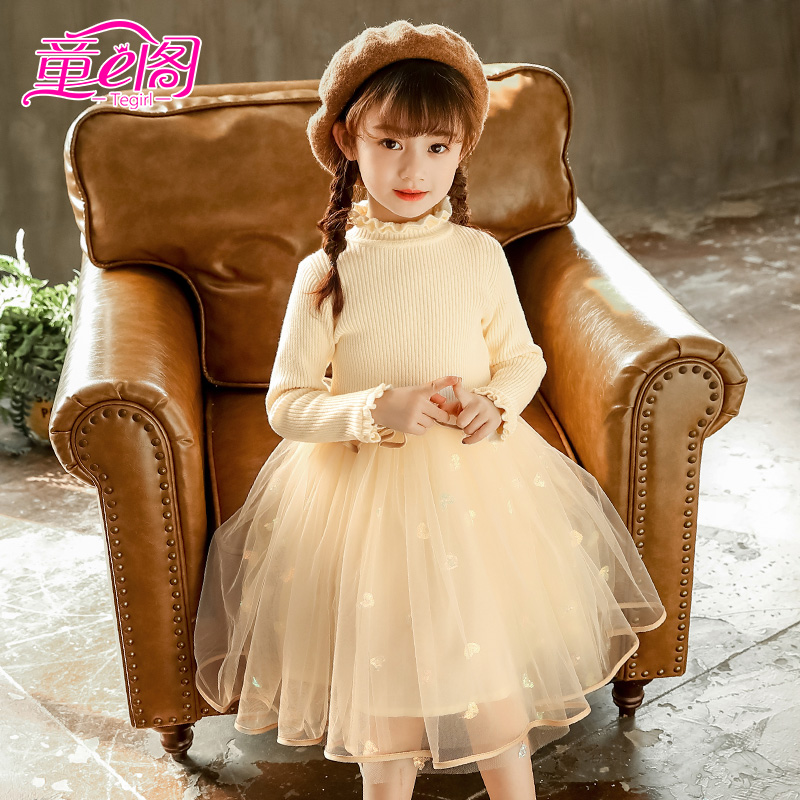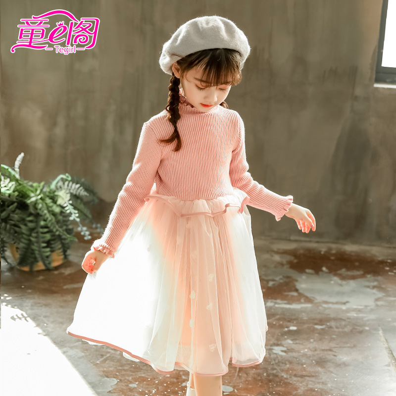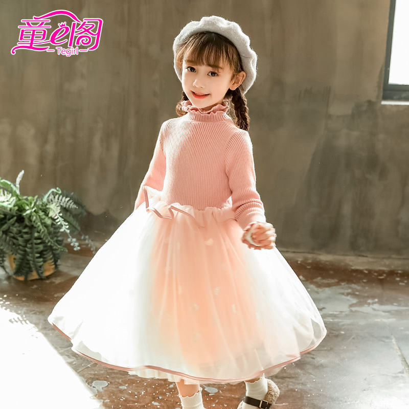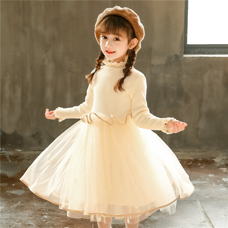 Girl Wool Jersey Mesh Yarn Dress Childlike Autumn winter CUHK Fairy Bright Sheet Skirt Children Gush Knit Foreign Dress Thick