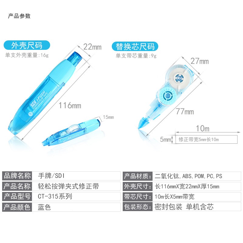 Hand (SDI) correction tape Japanese imported Mini modified belt with CT-315 replacement core cute small middle school students to correct the wrong correction liquid with portable simple large capacity transparent belt
