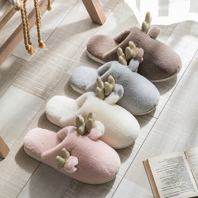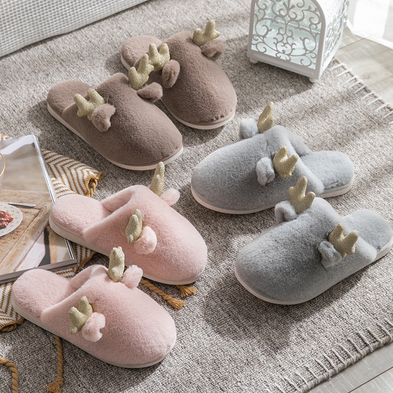 Slippers home autumn and winter women cute plush thick bottom warm men's slippers couple home pair of non-slip Indoor
