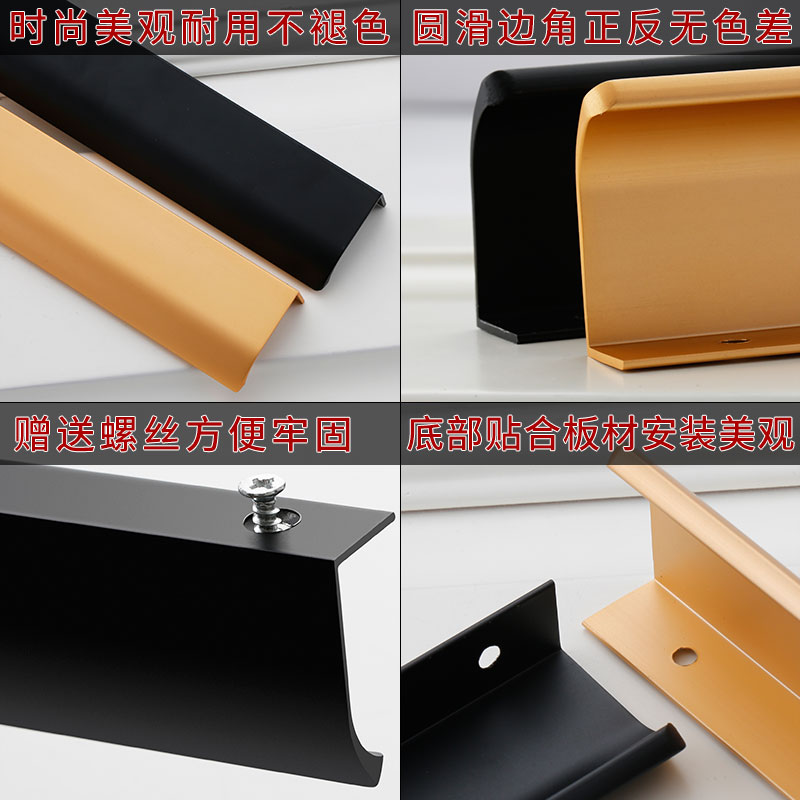 Lidsee invisible strip handle Nordic wardrobe door handle black modern minimalist drawer cabinet door closure handle