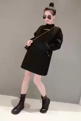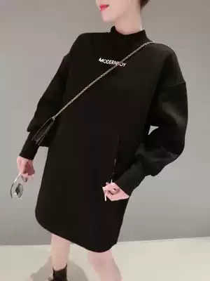 Spring and autumn long version thick cotton T women loose Korean version 2021 new European station pullover black half high collar long sleeve tide ins