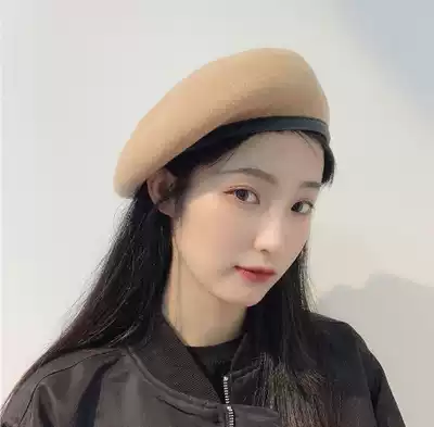 Beret female Japanese solid color woolen leather edging casual versatile retro literary temperament painter pumpkin hat