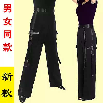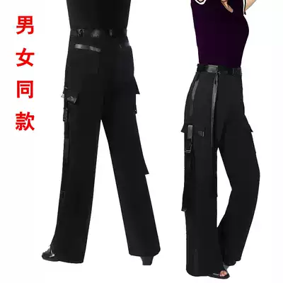 Men and women with the same Latin dance pants pocket pants modern dance ribbon three-step stepping on Gitba pants sailor dance social dance