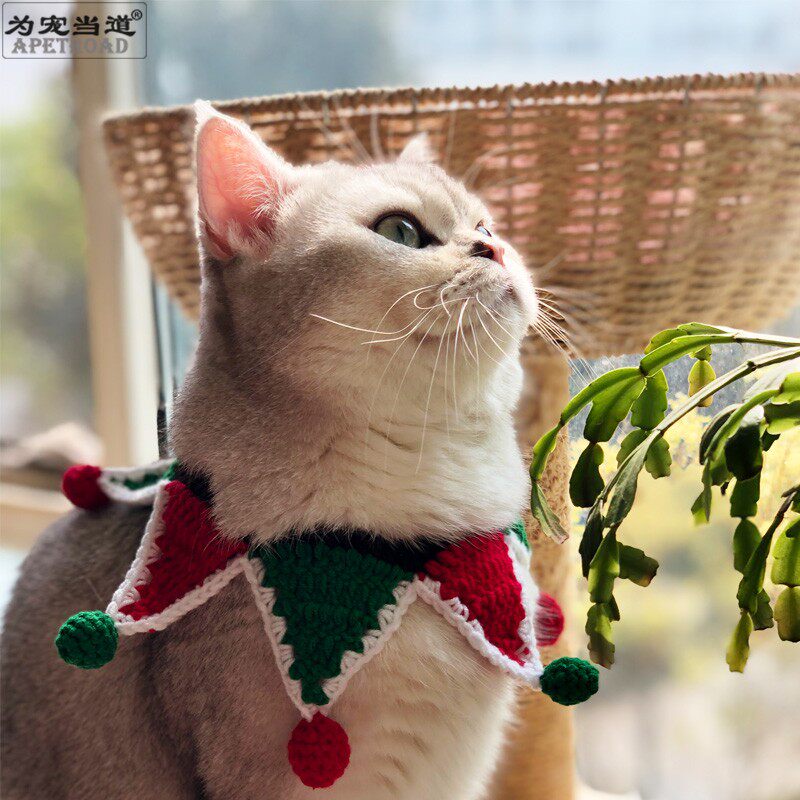Christmas Pet Fake Collar Kitty Cat Collar Cat Neckline Christmas Clown Pet Ornament Handwoven As A Pamby