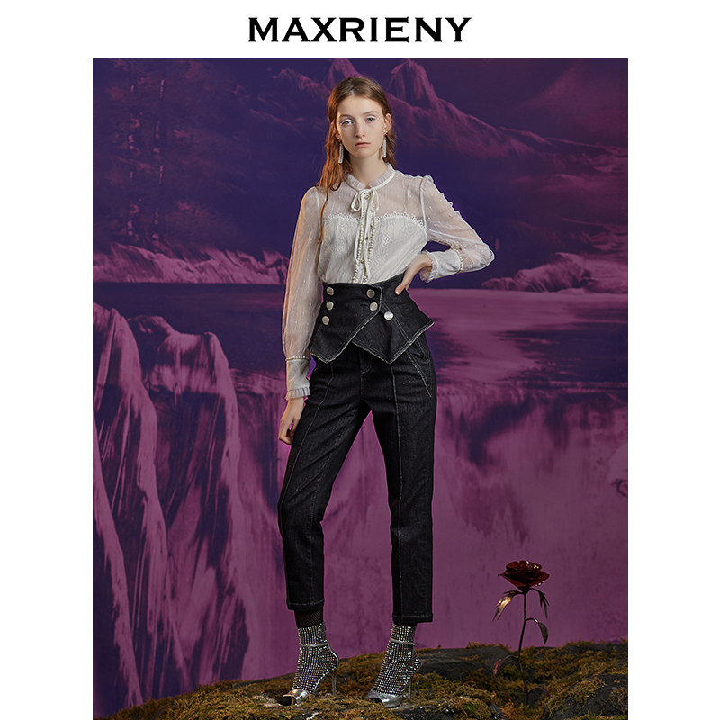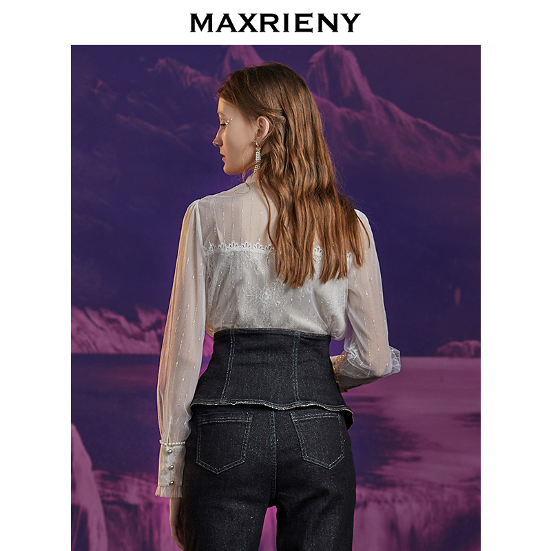 MAXRIENY retro polka dot hollow mesh lace-up long-sleeved lace shirt short western style shirt women's trend