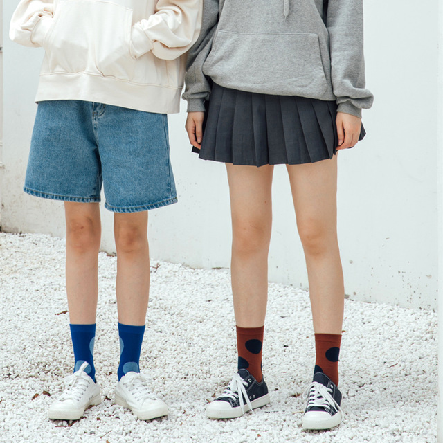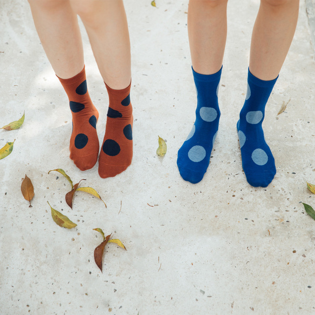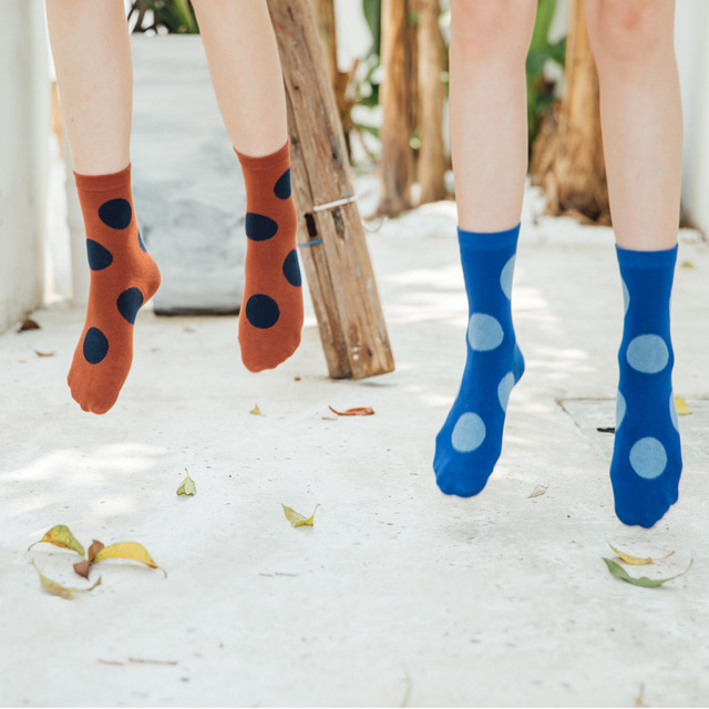 Under the tree box Japanese autumn and winter cotton big wave dot color tube socks retro polka dot pile pile women's socks