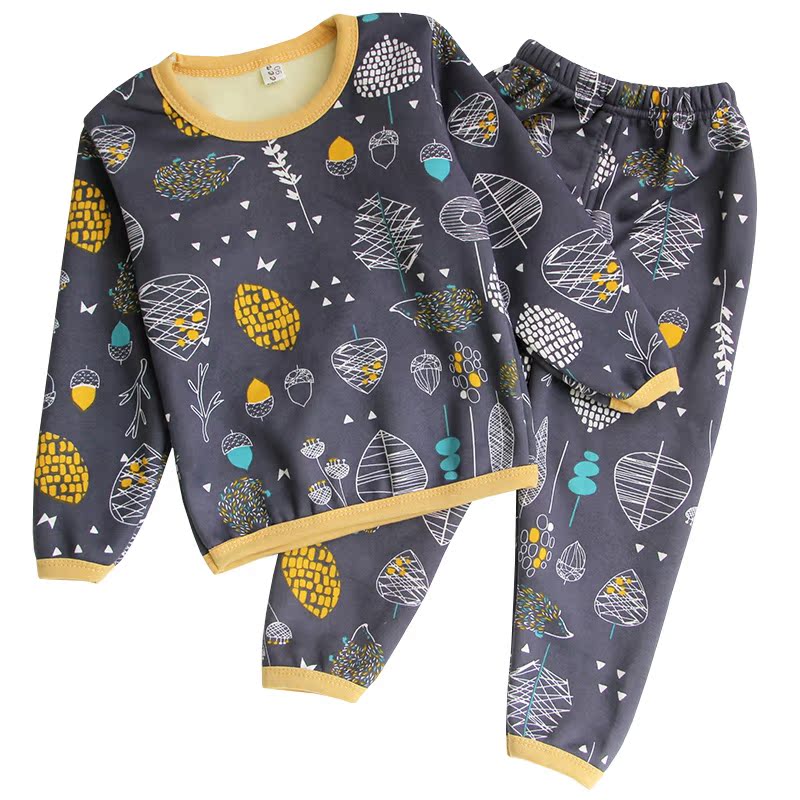 7 fold Xiaobao home winter children plus velvet fever clothes Boys Girls autumn clothes sanitary pants two-piece baby