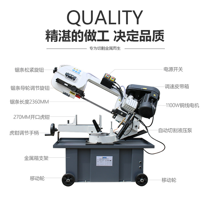 8 inch household stainless steel metal saw bed desktop steel pipe cutting band saw machine multi-function hydraulic vertical and horizontal saw bed