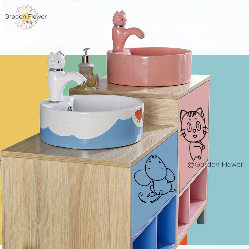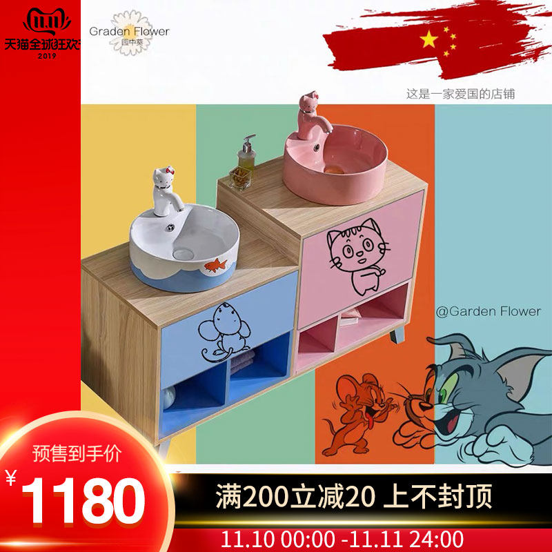 Tom And Jerry Original Children's Bath Cabinet Parent-child Handwashing Tables Ins Nordic Wind Primary-secondary washbasin
