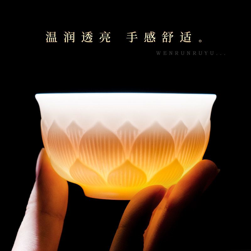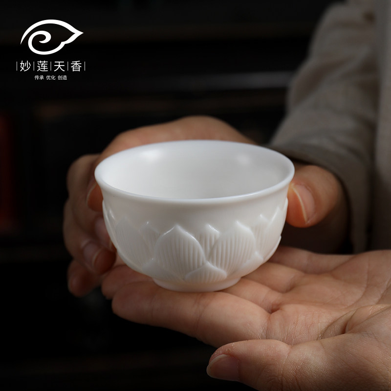 Inexplician Sky Fragrant Defied White Porcelain Tea Cup single cup Ceramic Pint Cup Master Cup single Lotus Gongfu Tea Large number
