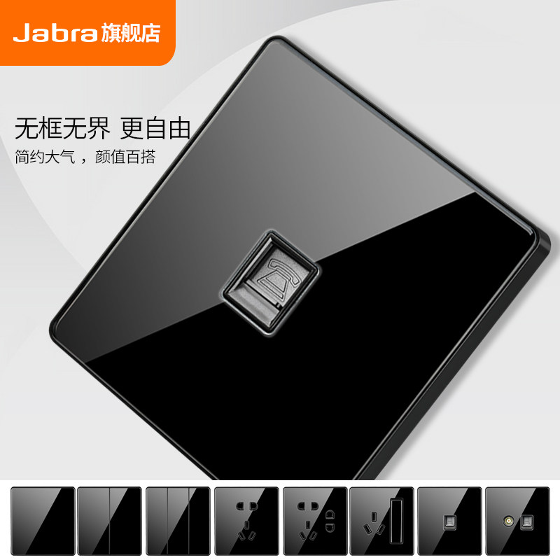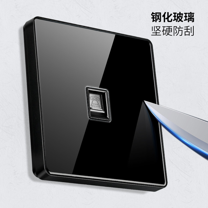Jabra Tempered glass switch socket Phone socket panel TEL telephone line socket Mirror black panel