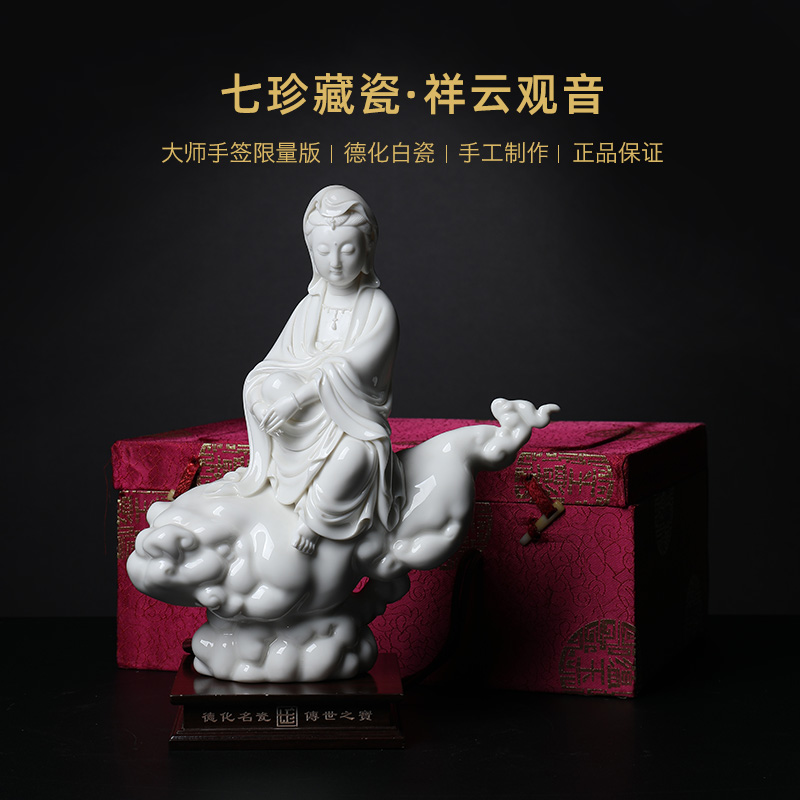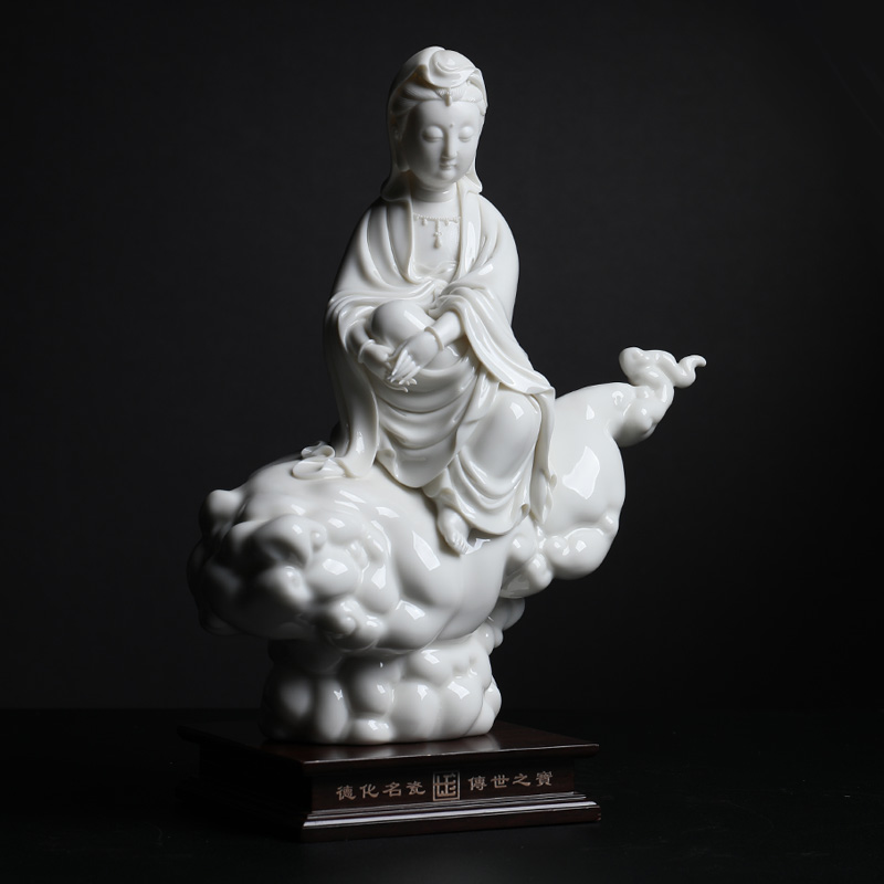 Dai Yutang Ceramic Decoration "Auspicious Clouds Free Water Moon Goddess of Mercy" Su Xianzhong Dehua White Porcelain Buddha Artwork
