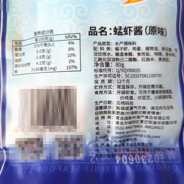 Guoxinlihopper shrimp paste, Shandong Qingdao specialty, ready-to-eat original Hopkin shrimp paste seafood sauce 80g bag, not salty