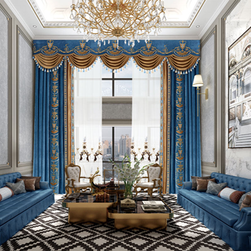 Light luxury high-grade flannel embroidered curtain finished curtain curtain villa without high atmosphere living room bedroom atmosphere curtain