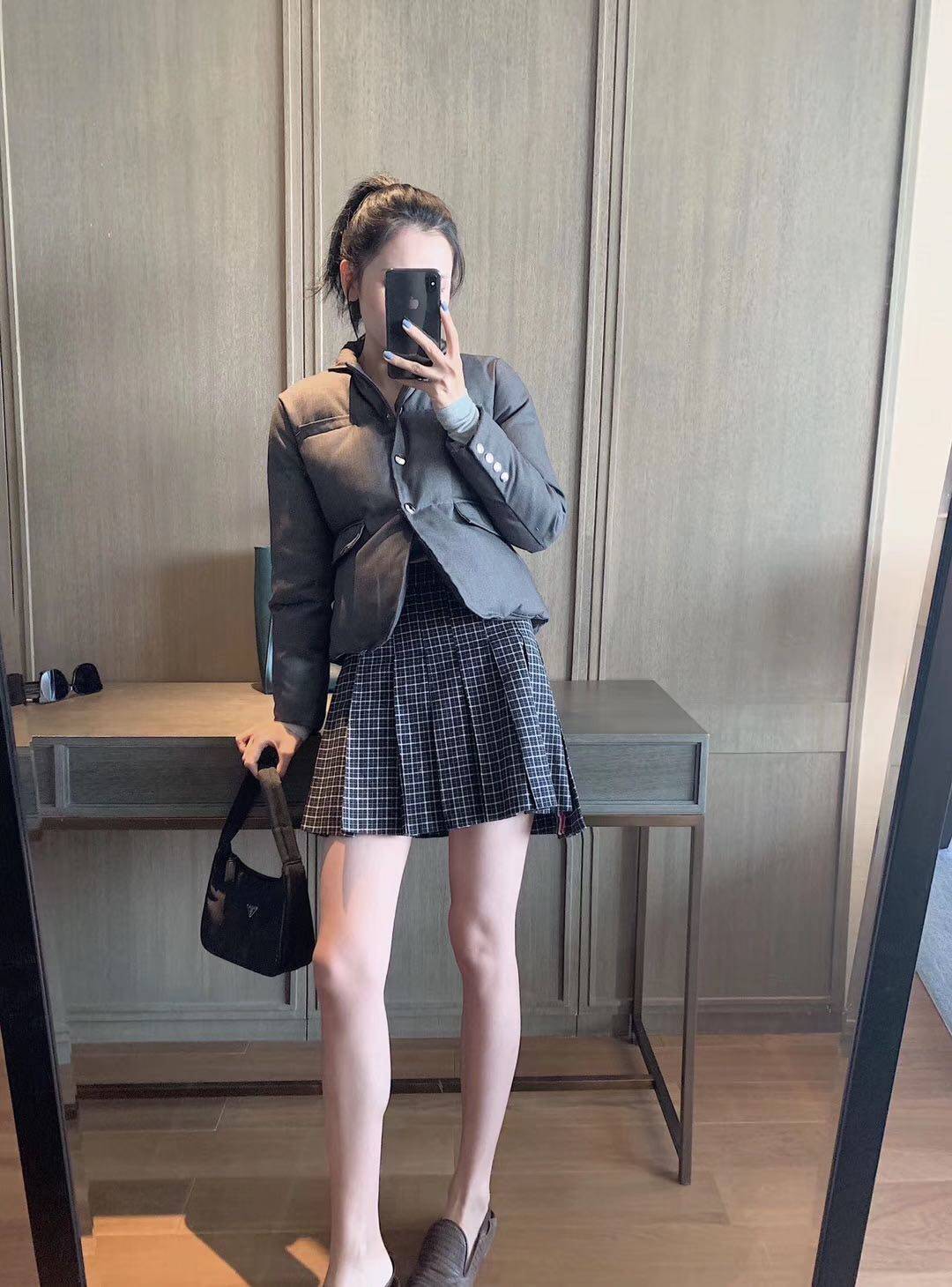 2022 Winter New Hundred Skin TB Gray Short Cotton Cotton Exclusive Customized Women's Cotton