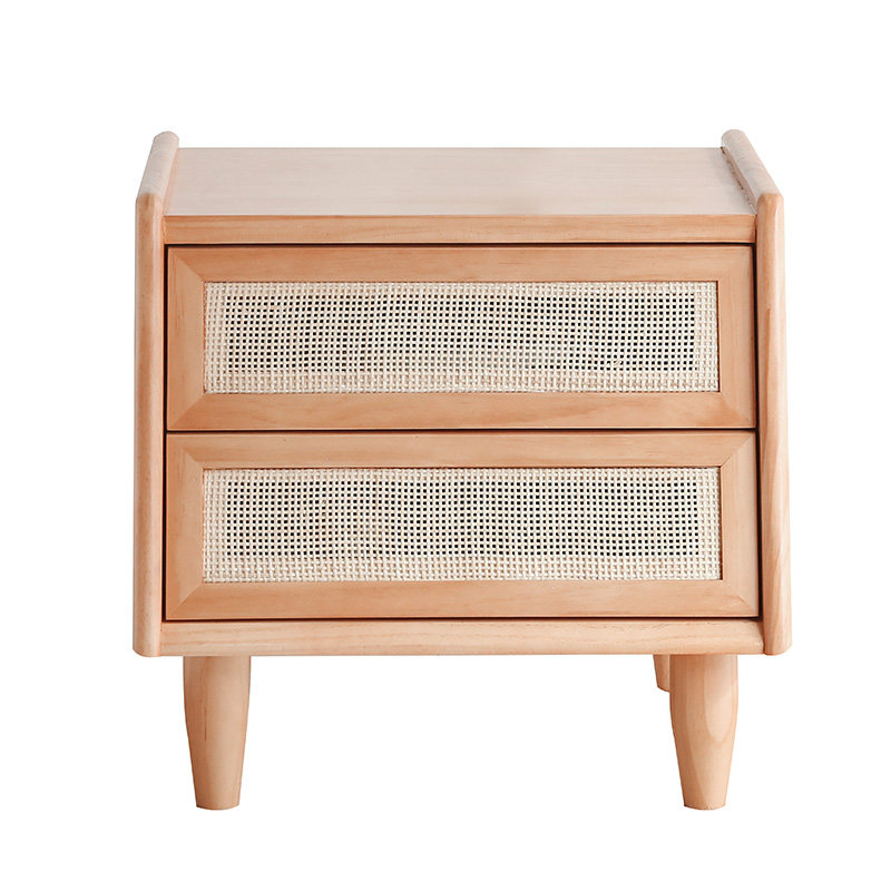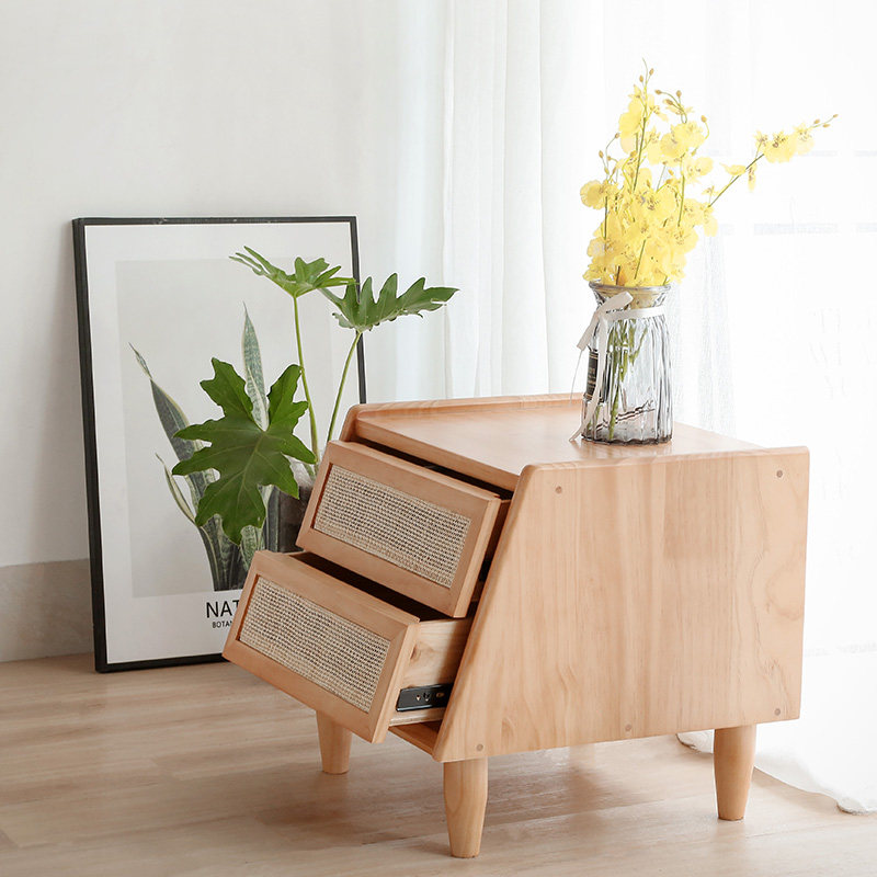 Japanese-style solid wood bedhead cabinet Nordic log board log cane bedside cabinet small household creative collection cabinet
