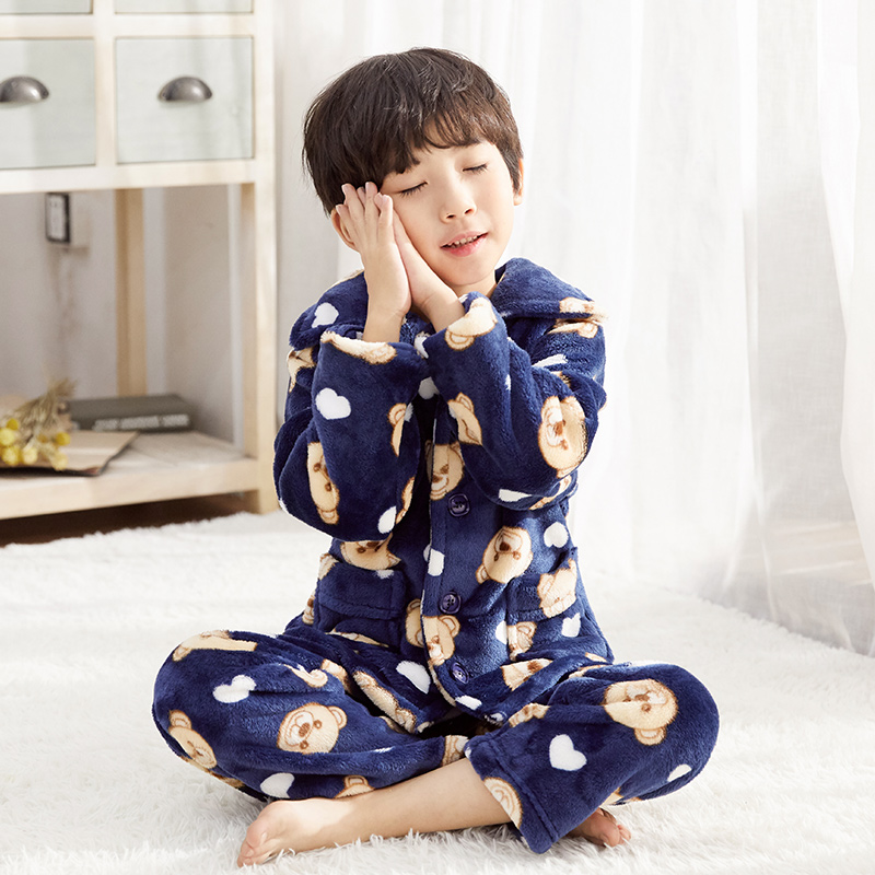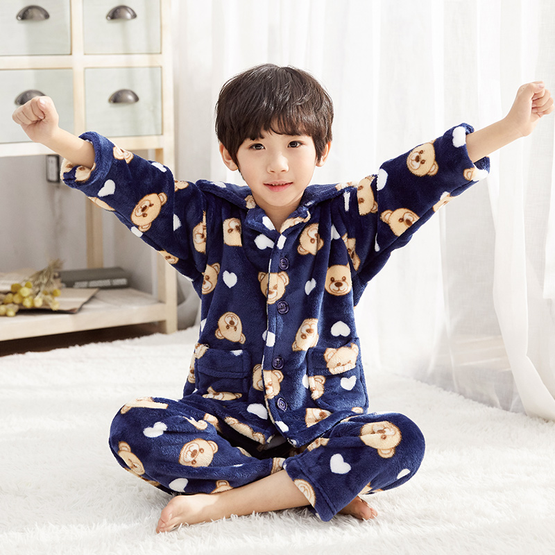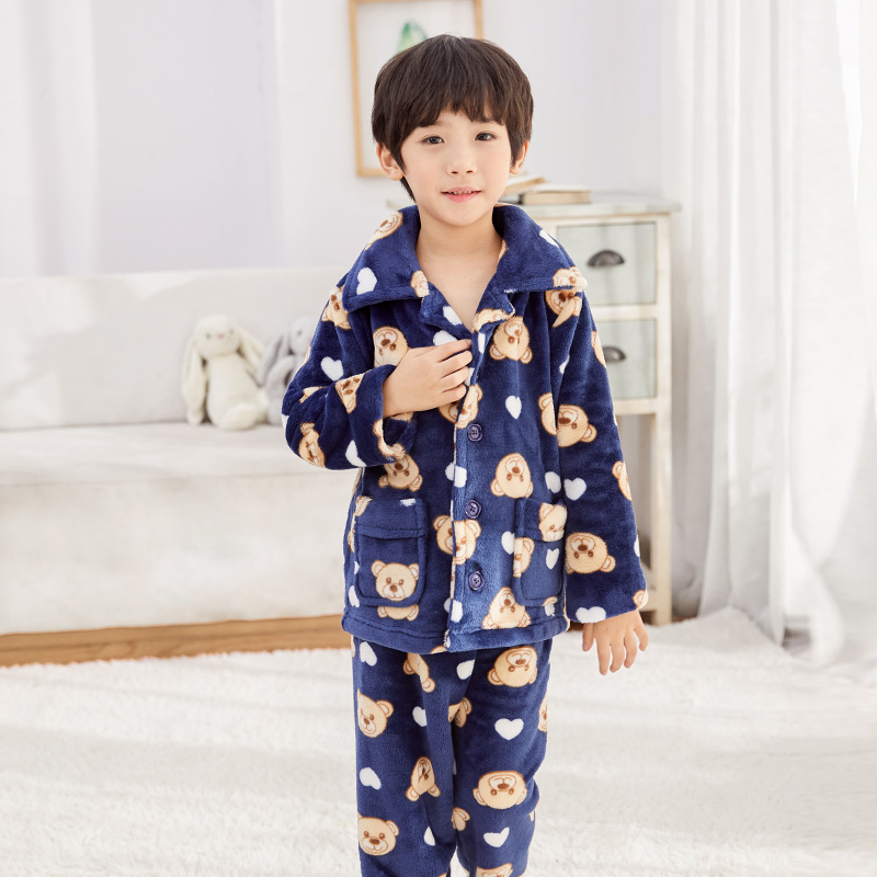 Autumn Winter Children Sleepwear Flannel Boy's Home Conserved Baby Thickened Boy Coral Suede Pajamas Suit