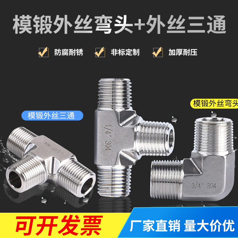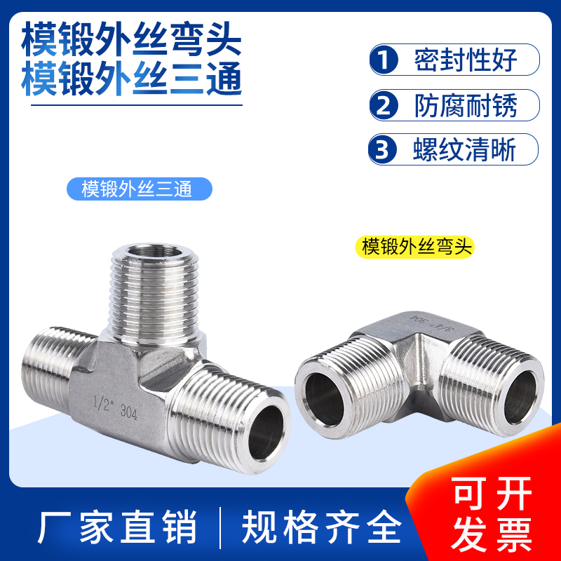 304 stainless steel grinding external thread elbow die forged in vitro silk tee 2 for 4-part external thread elbow tee