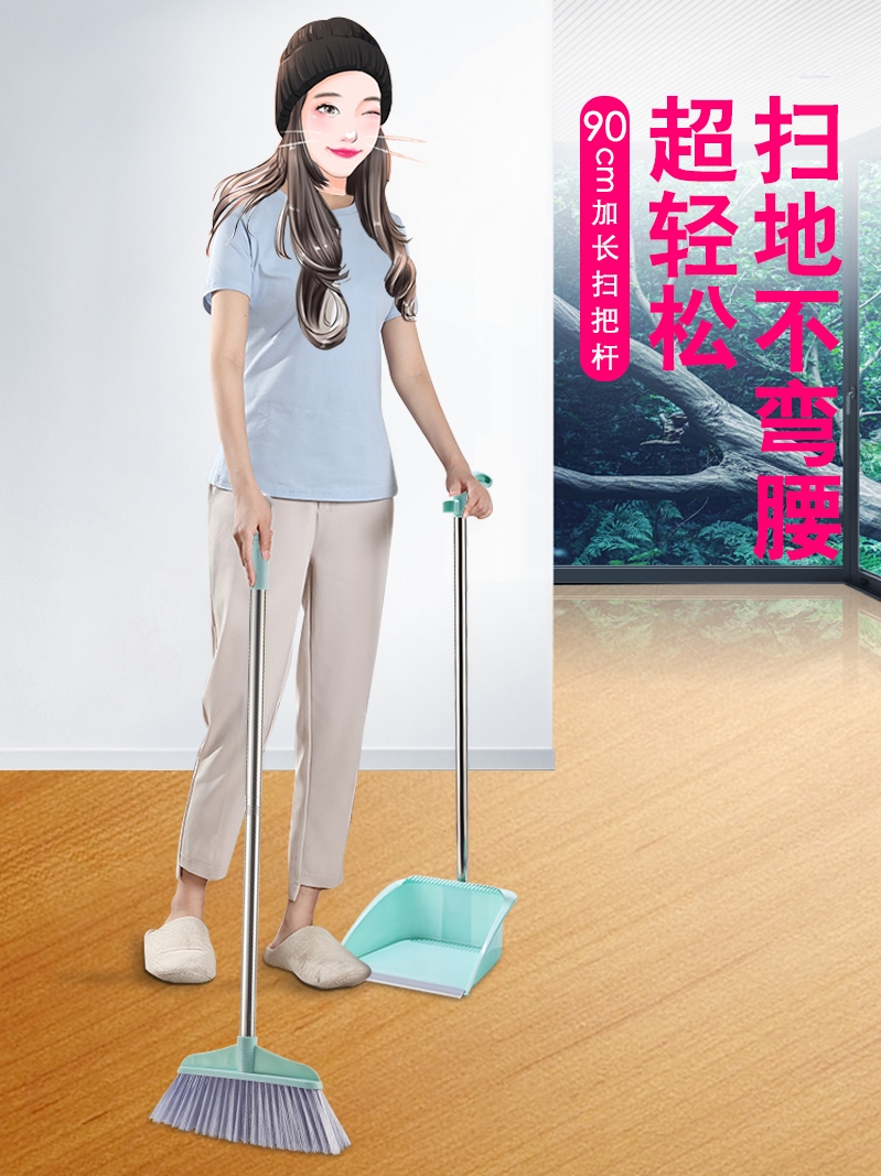 Household broom single plastic integrated dustpan with scraping teeth hair cleaning broom garbage shovel broom set