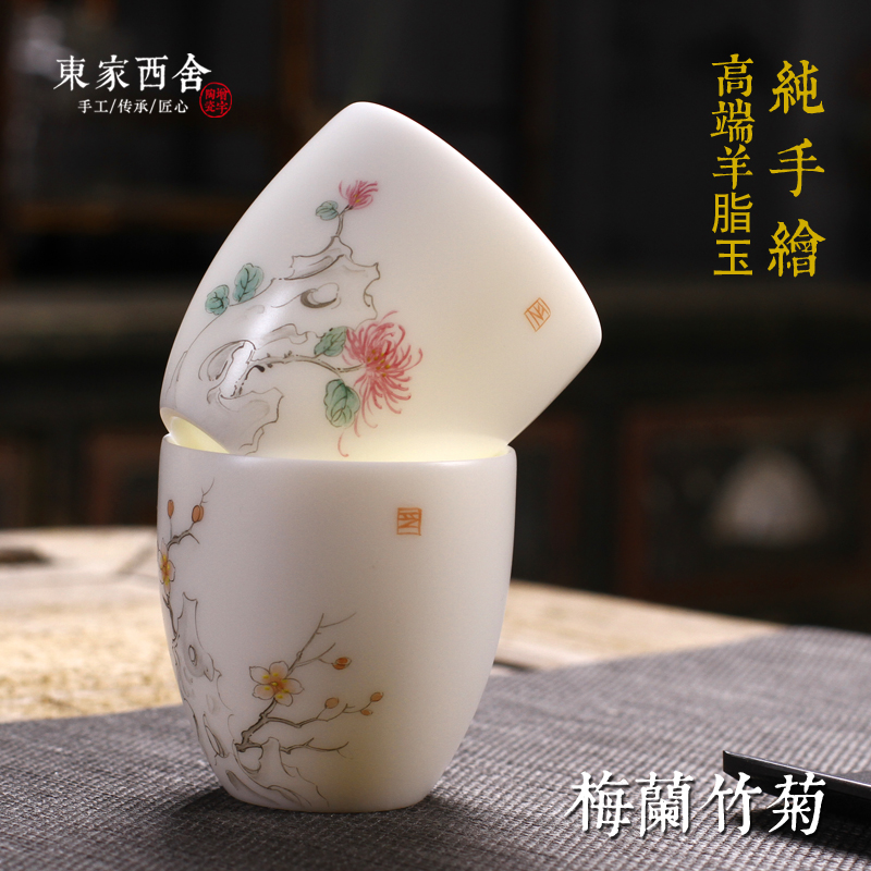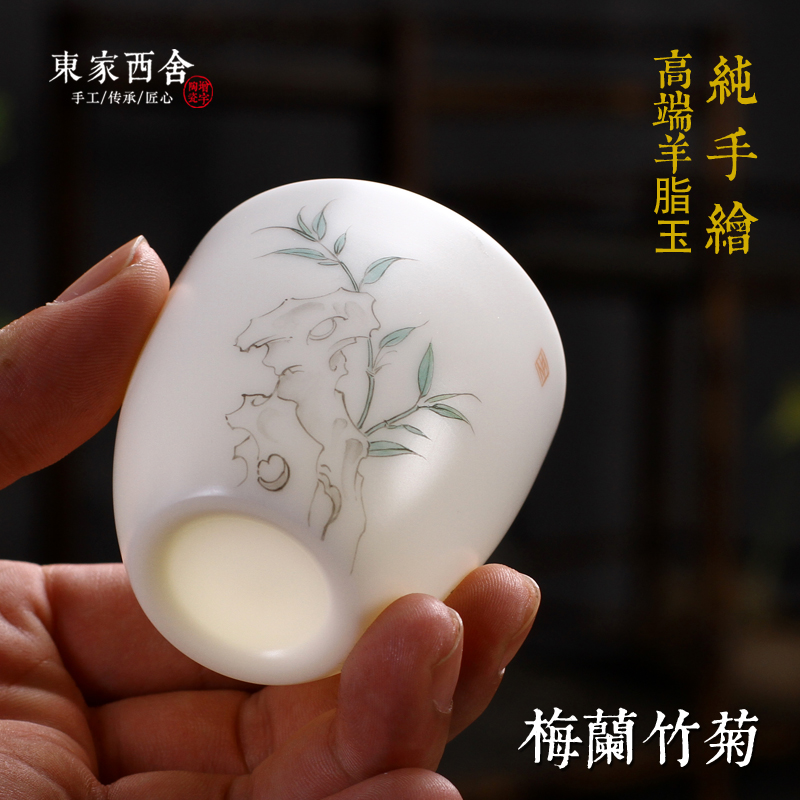 High-end master cup Teacup Dehua White porcelain tea cup Household gift Meilan bamboo chrysanthemum sheep fat jade porcelain tea set ceramics
