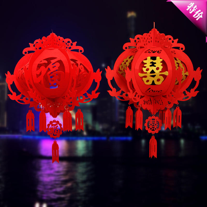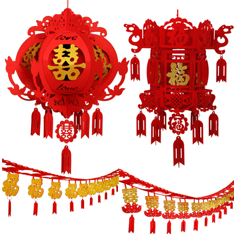 Wedding Wedding Celebration hanging decoration non-woven suede Pendant Joy Character Red Palace Lantern Wedding Wedding house arranged Decorative Items-Taobao