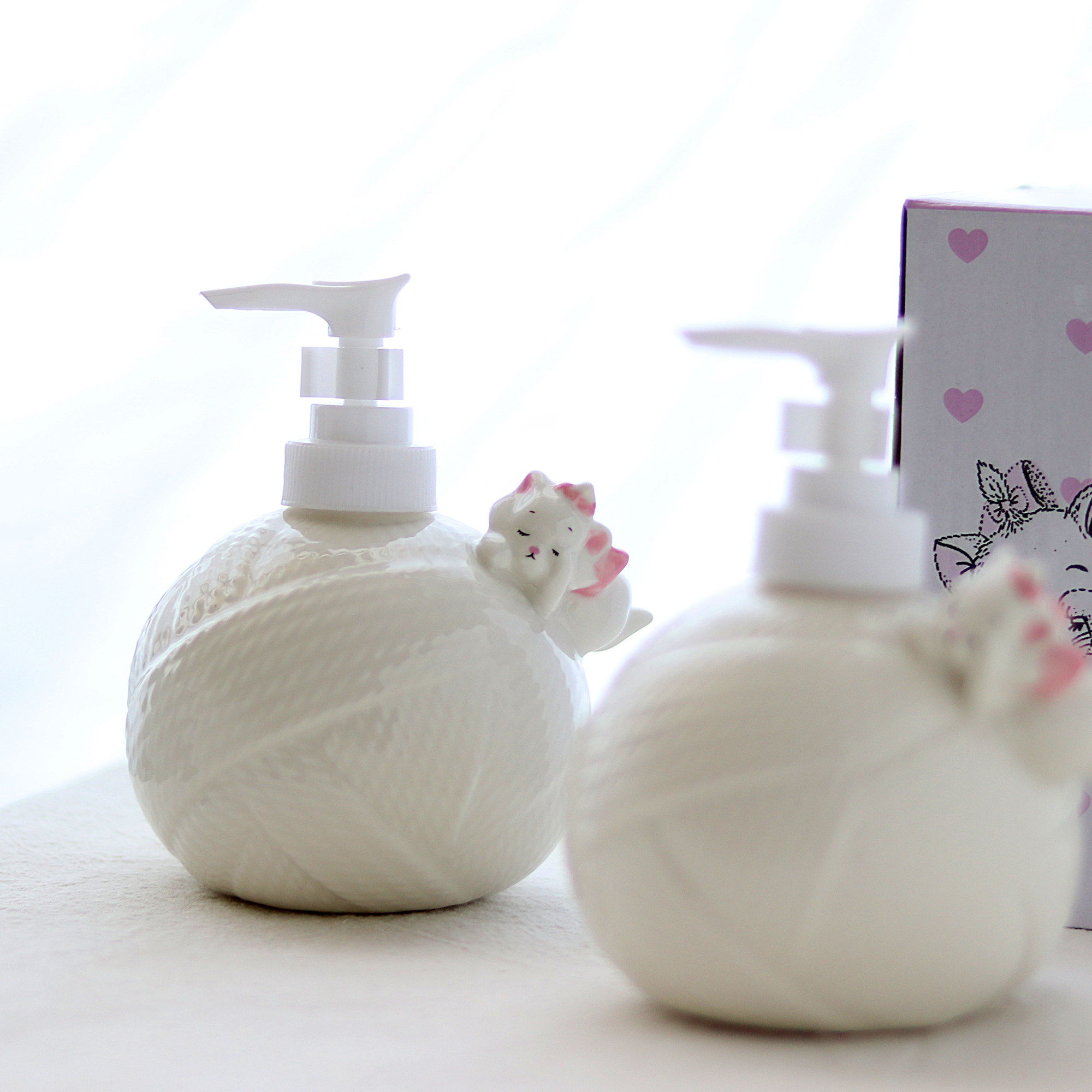 Soft cute ~ cute little fresh solid embossed hair line texture Marie cat ceramic split hand wash liquid body bath lotion