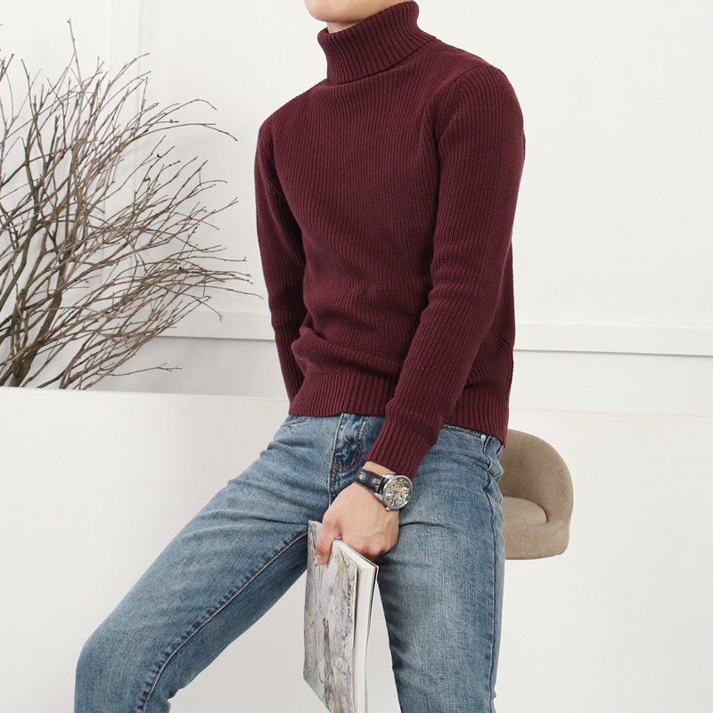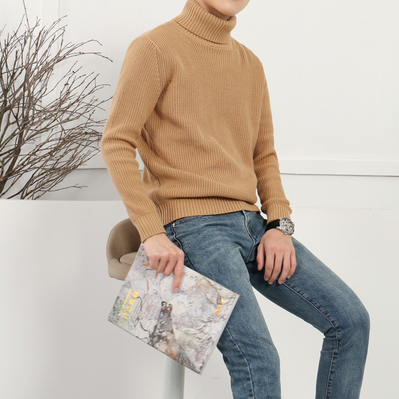 Korean multi-color turtleneck sweater men's thick winter trend sweater men's Korean version of the slim casual knitted sweater sanitary clothing men