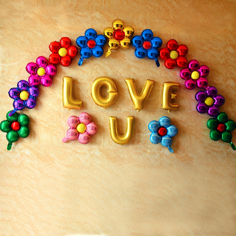 Marriage celebration baby birthday children creative wedding room decorated with petals aluminum film balloon
