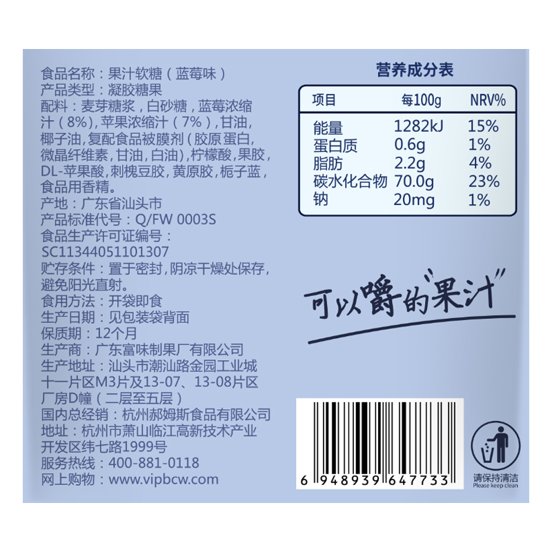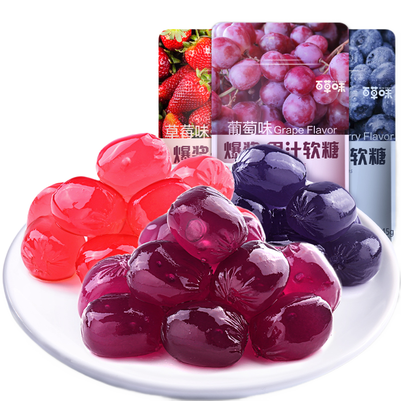 Baicao flavor fried pulp juice jelly 45g * 3 packs of gummy candy candy fruit fruit candy QQ candy children snacks
