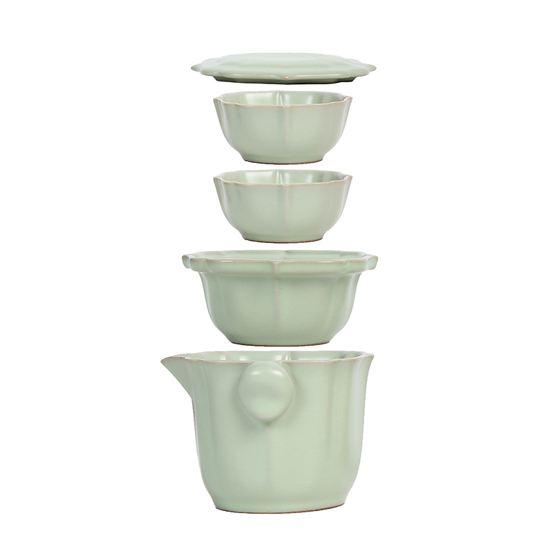Ru Kiln Travel Tea Set Group Express Guest Cup One-Pot-Two-Cup Minimalist Light Portable Containing Bag Outdoor Office Bubble Teapot