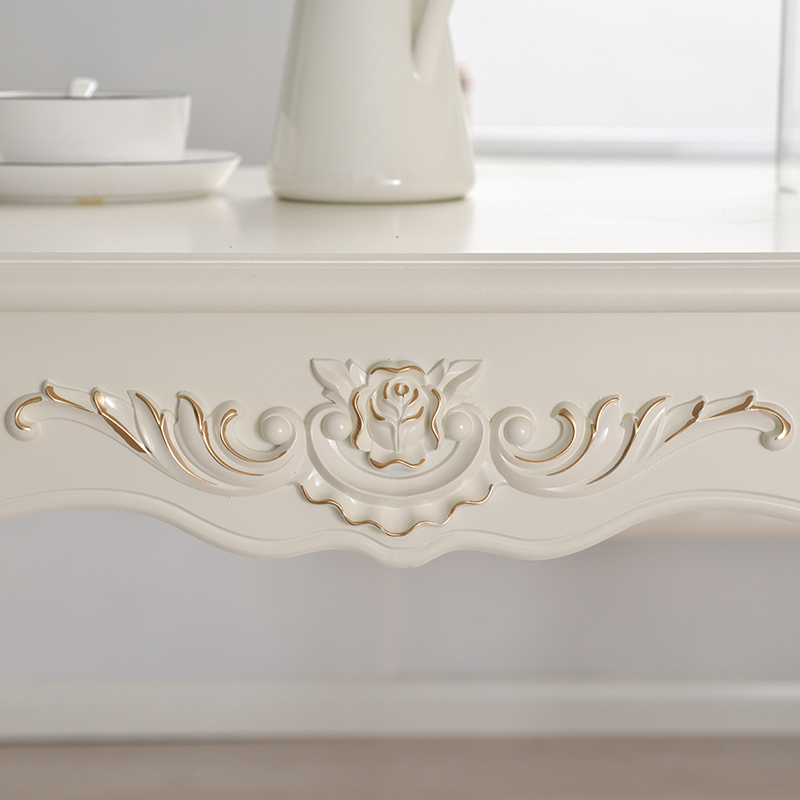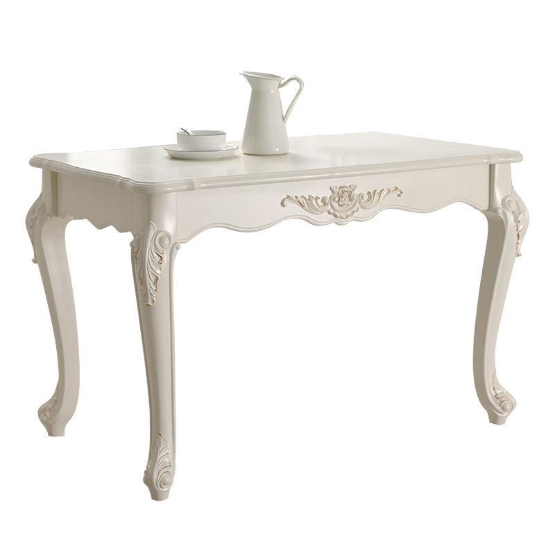 Minimalist small family type rectangular dining table modern European style carved dining room Home dining table French style light extravagant white dining table