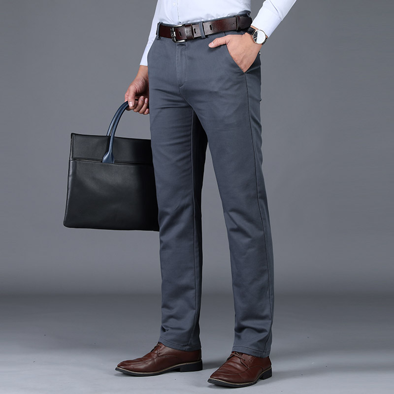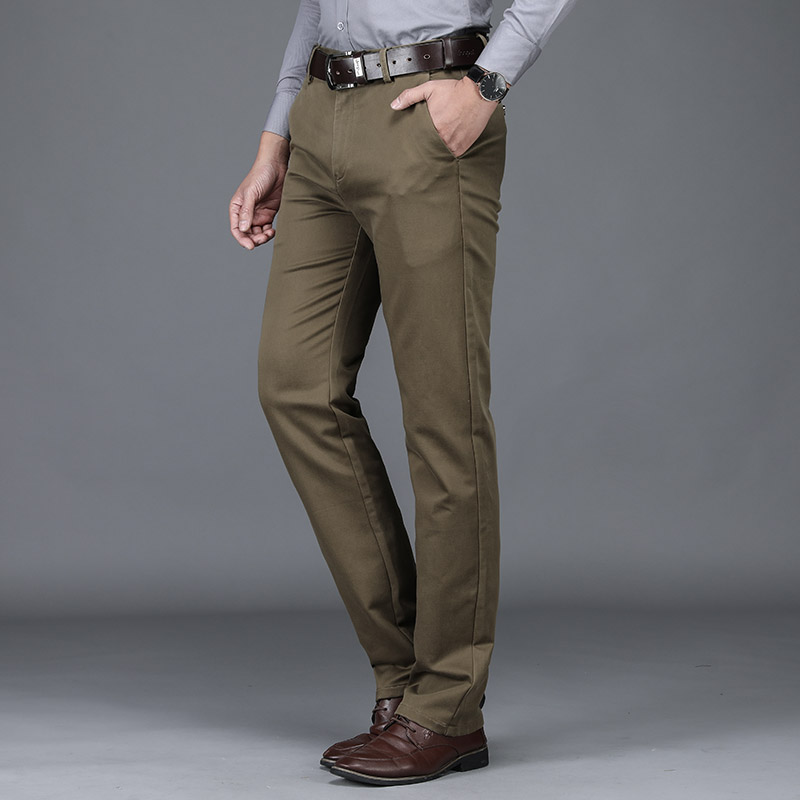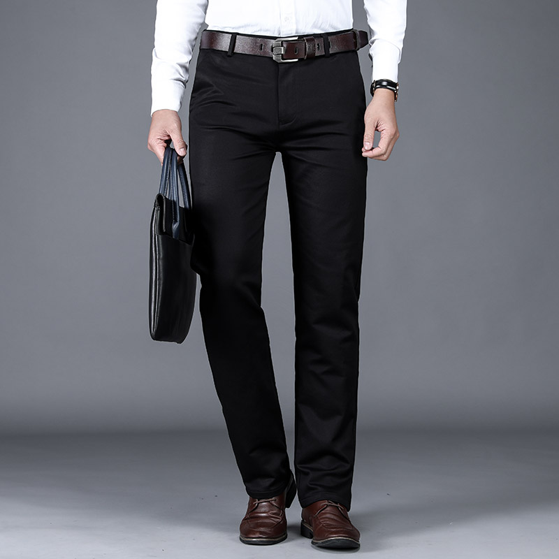 2019 autumn and winter ultra-thickened sky silk elastic high waist loose straight cylinder casual pants men's body Western pants men's middle age business