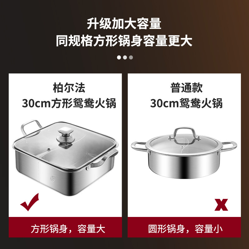 Yuanyang pot hot pot pot shabu-shabu 304 stainless steel thickened household square mandarin duck pot induction cooker special
