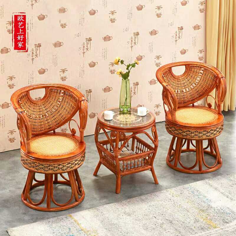 Real rattan chair three-piece living room modern simple balcony table and chair casual coffee table Vine chair back chair woven Teng chair