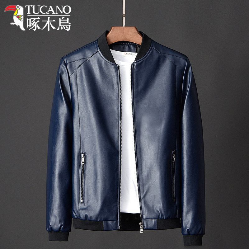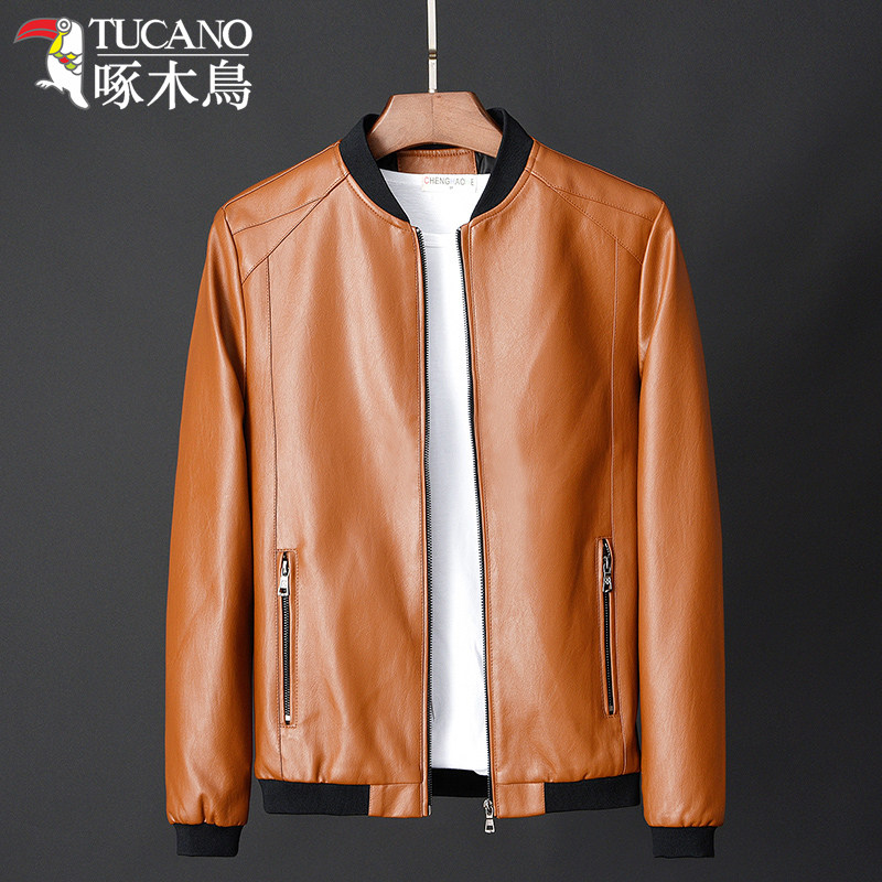 Woodpecker counter Haining leather jacket men's spring thin section mature and stable middle-aged coat leather jacket men