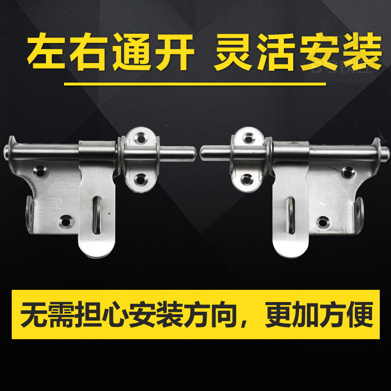 Stainless steel latch Anti-theft door bolt Surface-mounted lock thickened wooden door latch Powder room door pin room door left and right door latch
