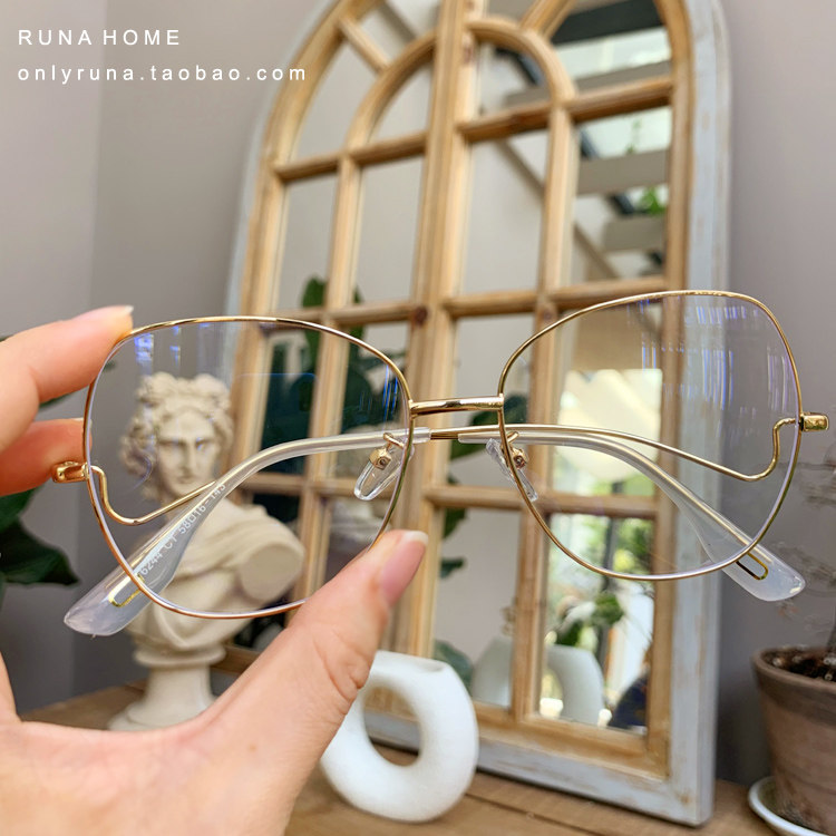 RUNAHOME Spring Summer Exotic Legs Metal Large Frame Butterfly Explicit Face Small Male And Female Anti-Blue Myopia Flat Light Frames