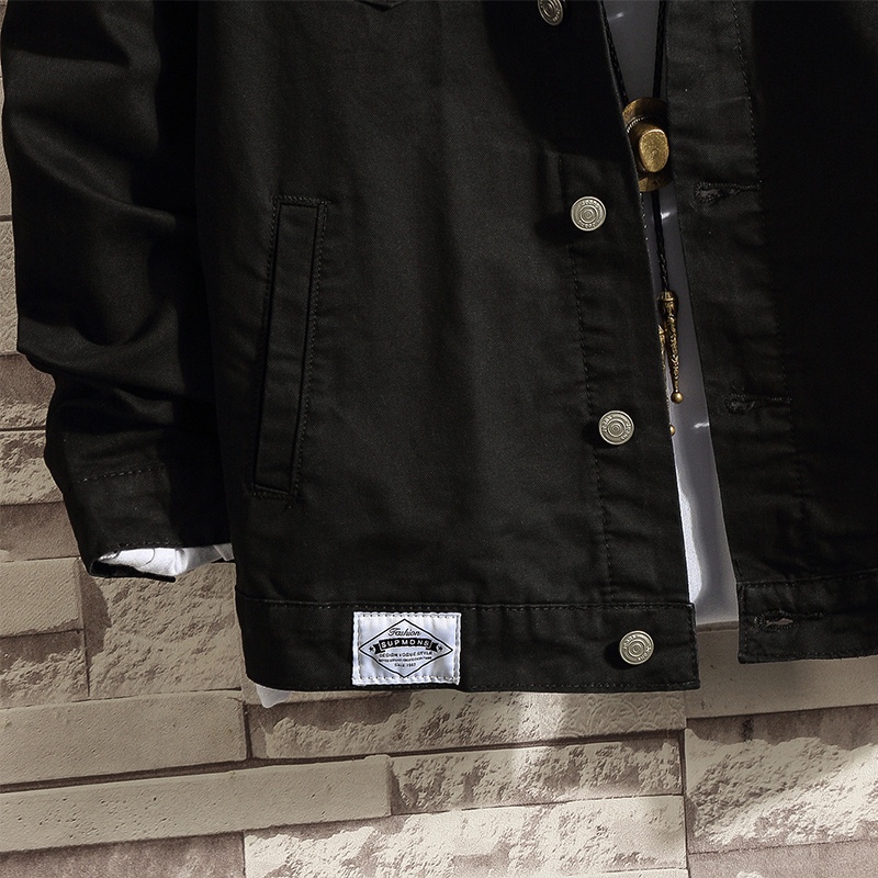 Japanese ruffian handsome jacket new Korean version of the trend car stickers all-match denim clothes men's fat functional jacket top