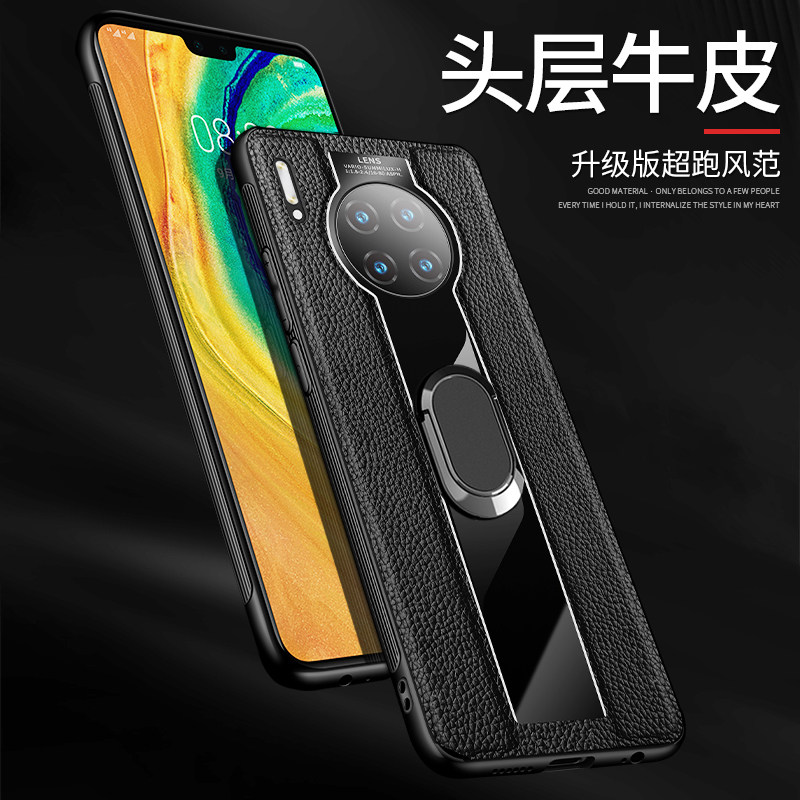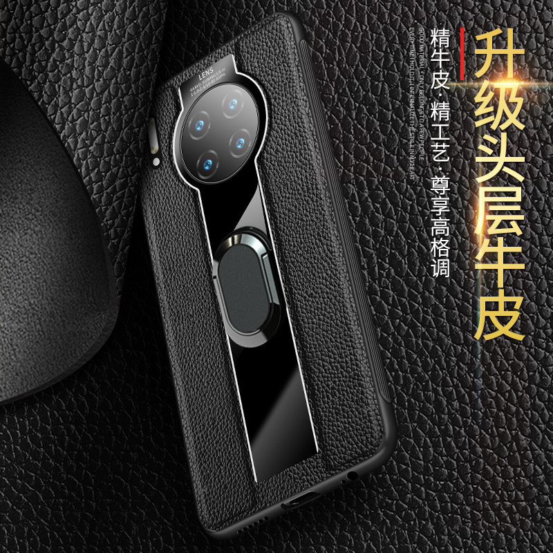 Suitable for Huawei mate30pro mobile phone protection shell genuine leather ring Mate30Por protection leather cover Porsche limited amount of magnetic suction bracket female male section mt upscale full bag anti-fall cow leather