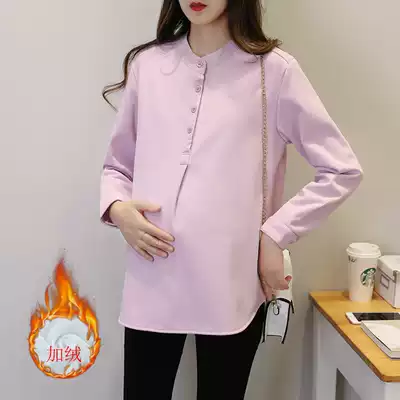 Maternity dress spring autumn fashion pregnant women shirt short top autumn winter plus velvet padded base shirt cotton T