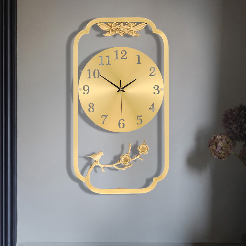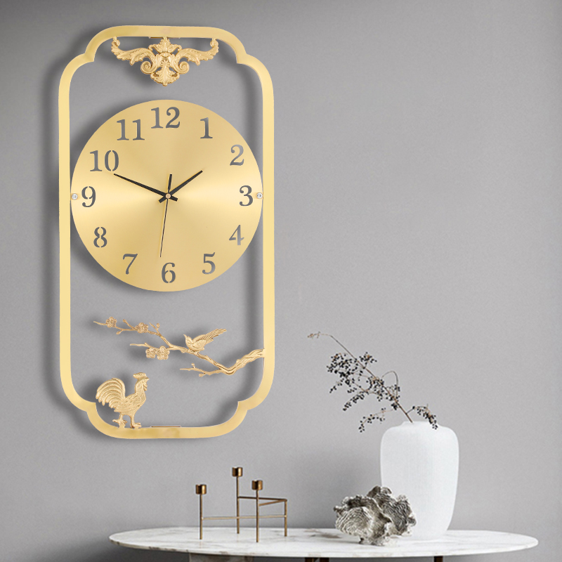 New Chinese all-copper wall clock-Golden Rooster annunciation New Chinese all-copper wall clock-happy eyebrows