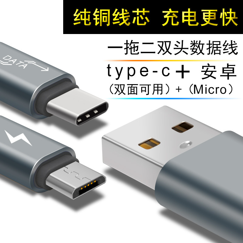 Dual Android head charging cable one-to-two millet type-c dual-head Huawei universal data cable two-in-one two-head
