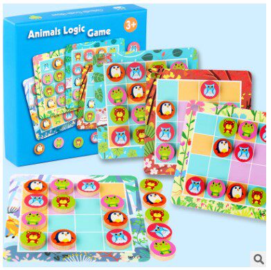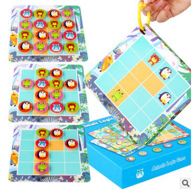 Dolai animal logic game Sixteen squares children's 3-6 years old puzzle table game Brain development teaching toy