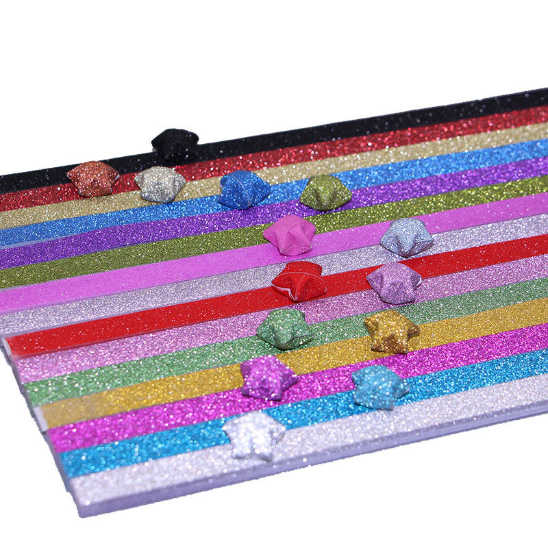 Sparkling Diamond Bright Pink Luminous Star Origami Flash Paper Note Wish Lucky Star Five-Pointed Star Fold paper Glitter Phosphor Fluorescent Colored Paper