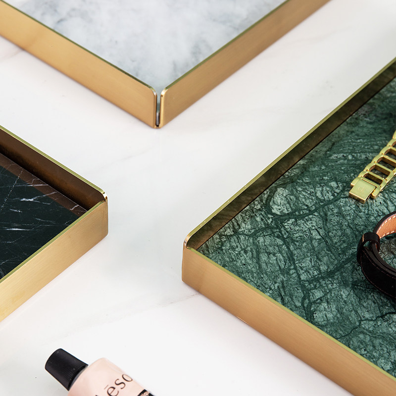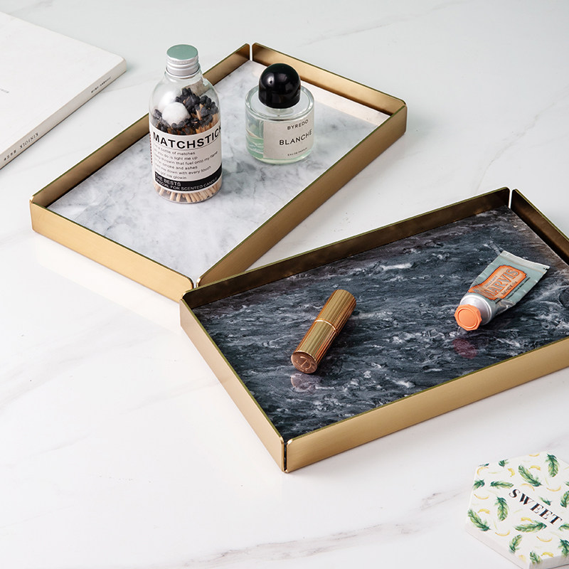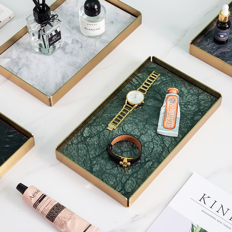 Mi Standers Nordic Marble Trays Pendulum with light lavish gold Jewelry Containing Trays Rectangular Bathroom trays-Taobao