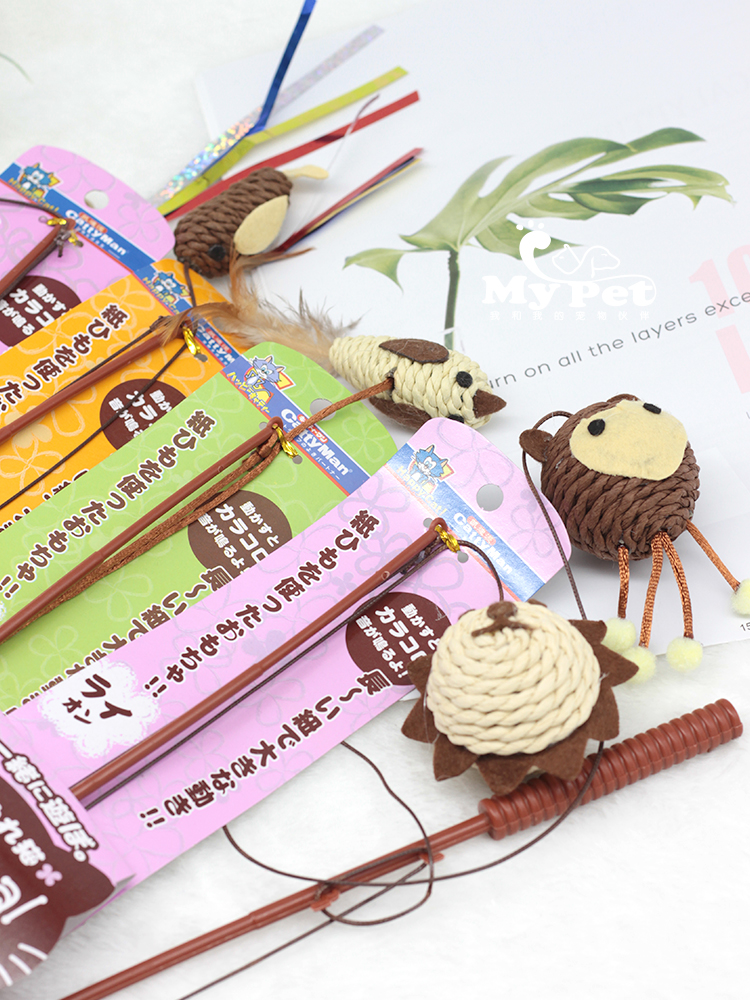 Japanese kitty toys Dogg cartoon Catty Man natural material natural wind fishing rod style Cat Stick My Pet