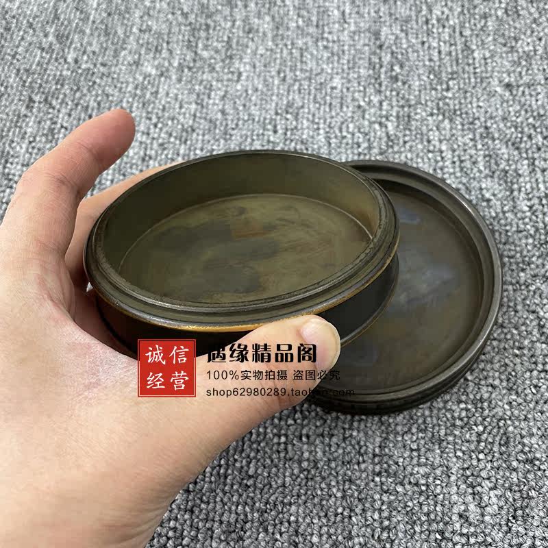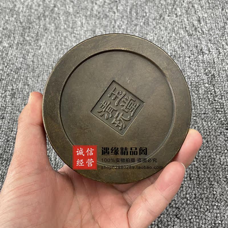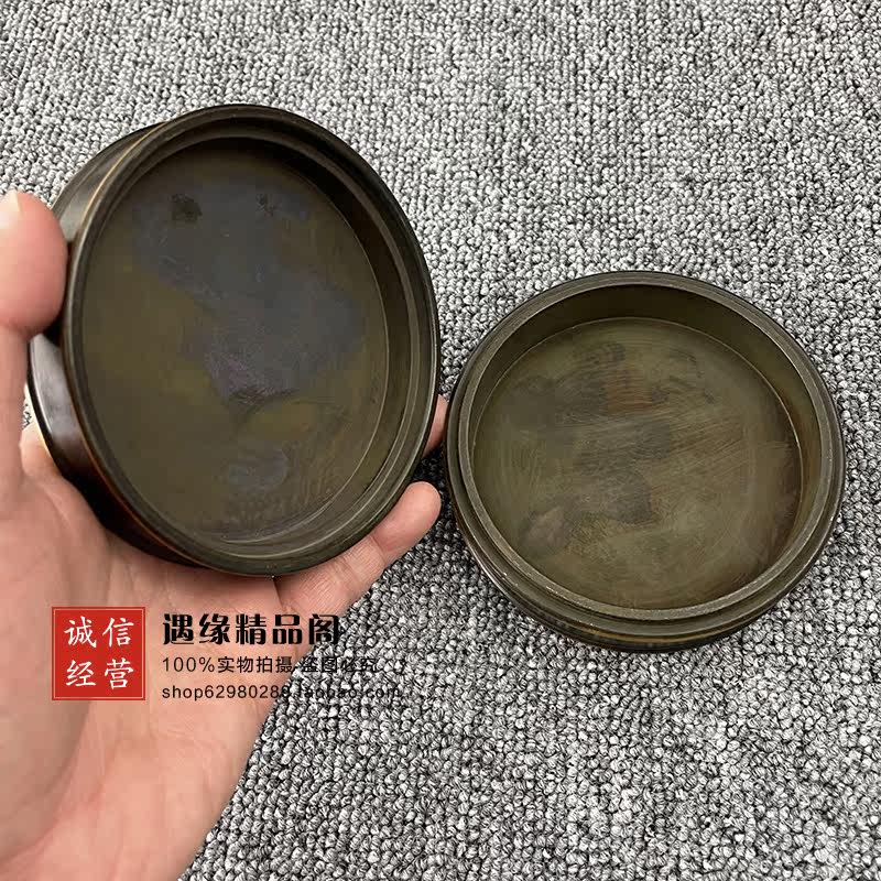 Antique vintage Pure copper brass ink cartridge Jewelry box Copper box Embossed zodiac sign Diameter 10cm