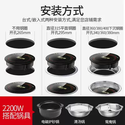 Zhigao hot pot restaurant special induction cooker round commercial 2200W embedded casserole mania duck pot sinking electric stove